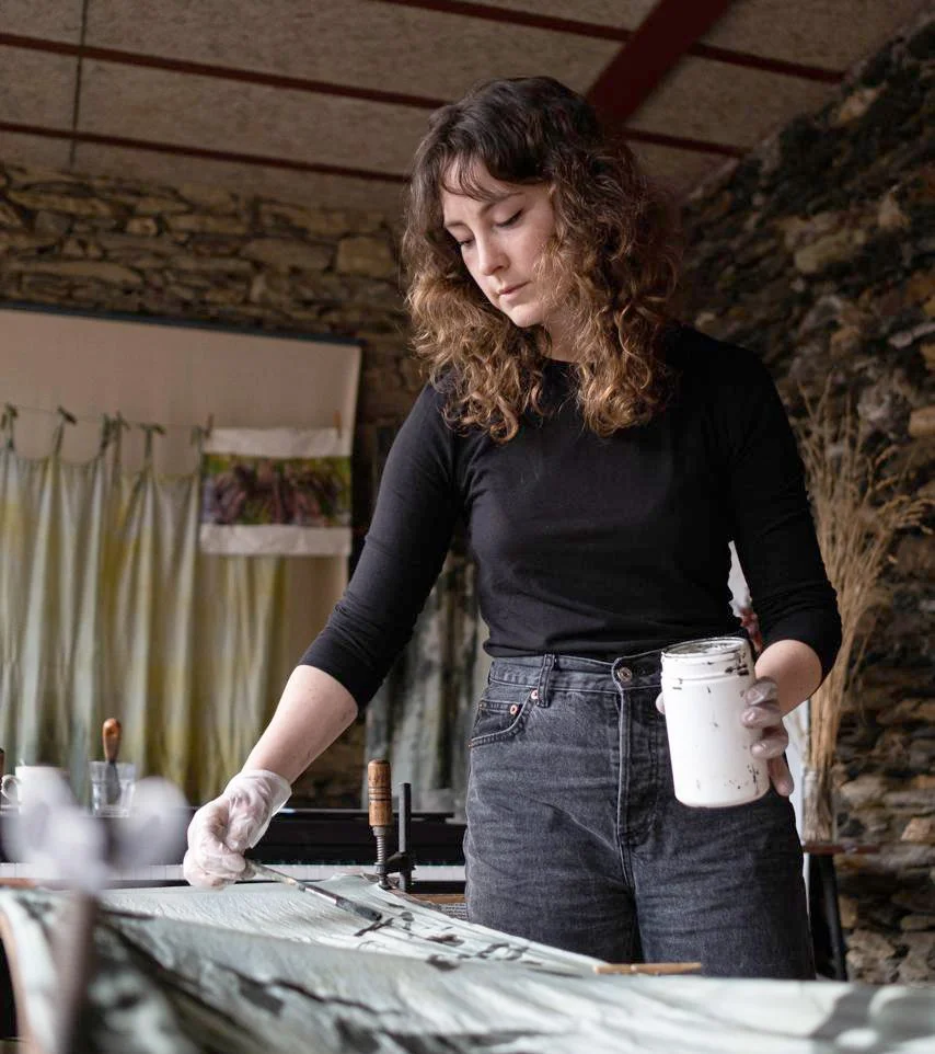 Dissenyo estampats tèxtils i exploro la intersecció entre els processos artesanals i el disseny digital, creant peces centrades en la textura que neixen de l’experimentació i es transformen en un llenguatge visual contemporani.